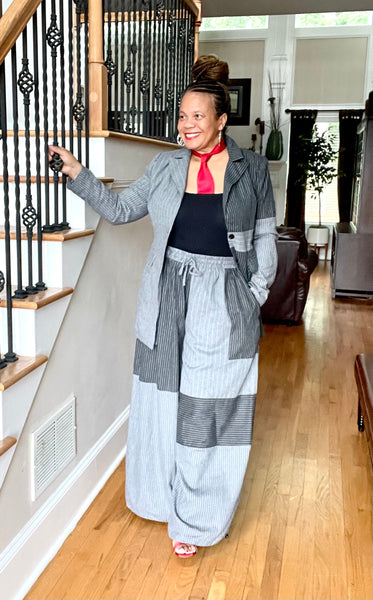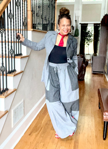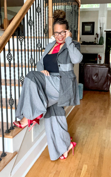 50 Shades…. This grey set is inspired by menswear. Its mix matched fabrics adds some character to it. Junk In My Trunk Boutique igotjunkinmytrunk.shop #fashion #boutique #fashionista #boutiqueshopping #style
