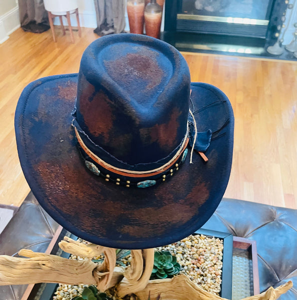 Hey girlfriends that can rock a hat….you don’t wanna miss these. They have a burnt/ antiqued finish that makes them stand out in the crowd. Onesize…