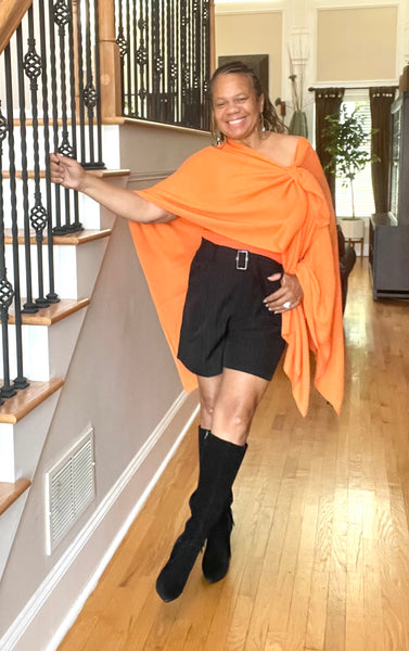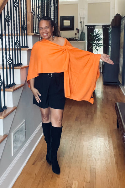 It’s a wrap. This wrap is the perfect item to carry into fall. It can be styled with a dress, a jumpsuit, or with your favorite slacks or jeans. J