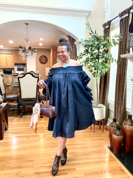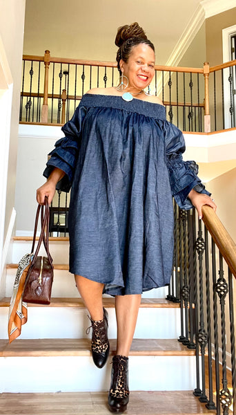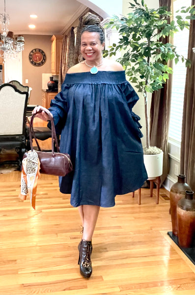 Nothing says sexy like showing your shoulders. This denim dress will make the perfect statement. For a fall look, add boots, chunky jewelry and a cute purse. Onesize Plus… no stretch except shoulders