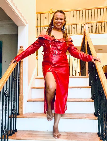 Put on your Red Dress….My My My this dress is a Showstopper. It’s vegan leather, no stretch. It zips from the bottom so you can make your split as high as you like.