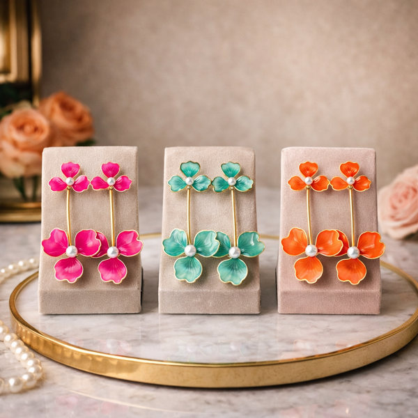 Featuring vibrant petal designs with luxe gold detailing and pearl accents, these statement drops bring the perfect mix of feminine charm and boss energy.