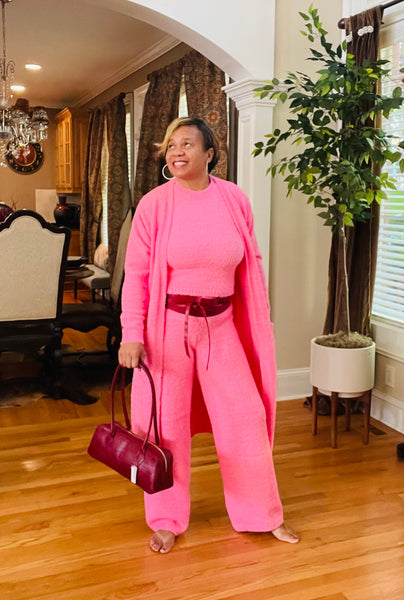 This 3 piece set is cozy and warm. You’ll definitely love it. Look cute at the airport or running your weekend errands. I paired it with red for a pop of color.