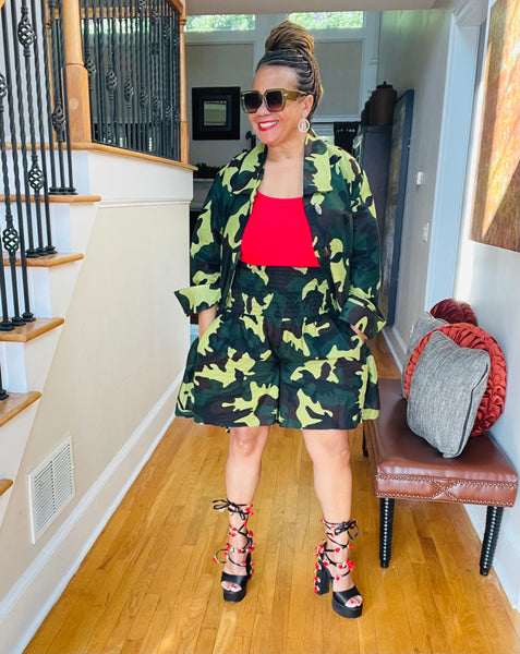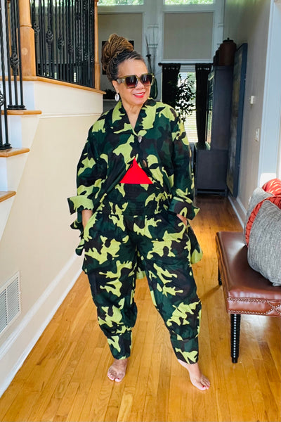 This set is perfect for fall. The swing jacket can be worn as a dress or you can style it with the pants or shorts… onesize… no stretch… pants have an elastic yoke and pockets… Fits up to 2x(16)