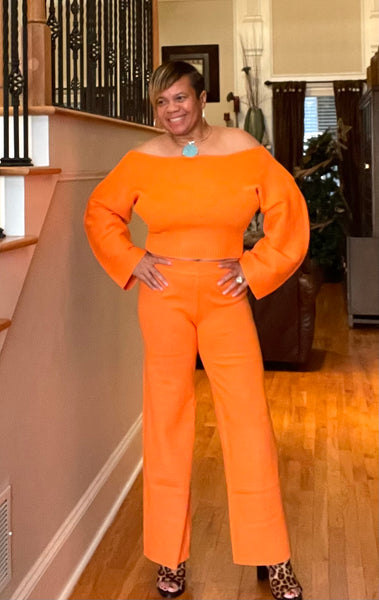 This orange sweater set is soooo cute and soooo comfy. Dress it down for a day date… dress it up for night.
