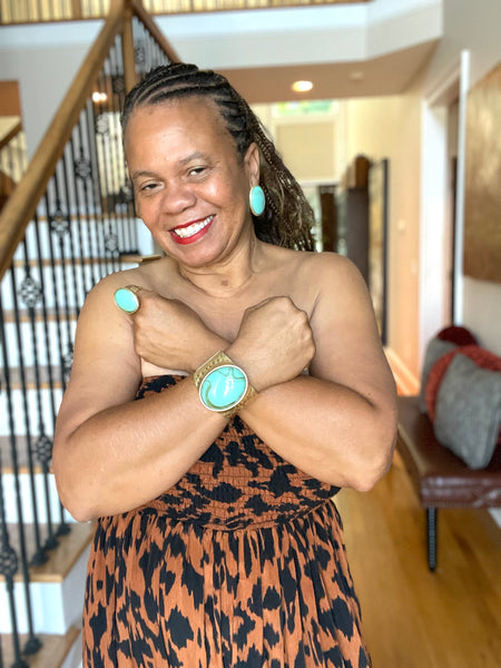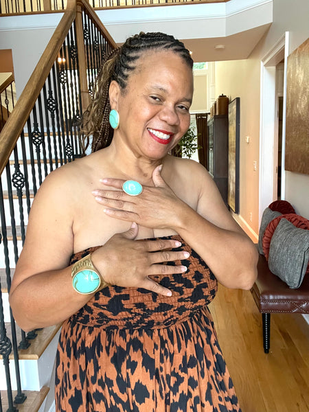 Turquoise and Gold Chunky Jewelry… ring… bracelet… earrings pierced only